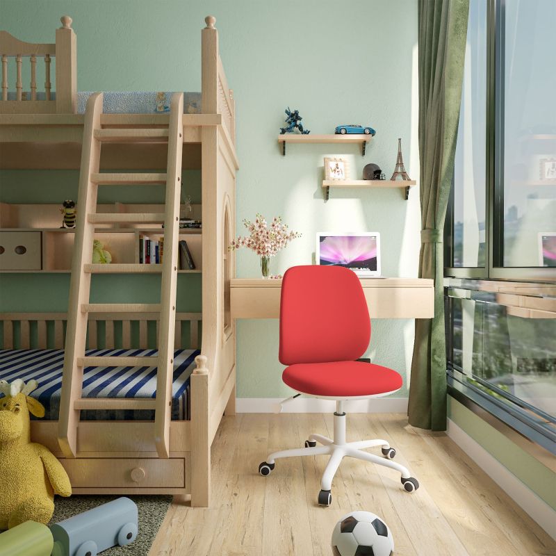 Детски стол RFG Lucky White, дамаска, червена седалка, червена облегалка